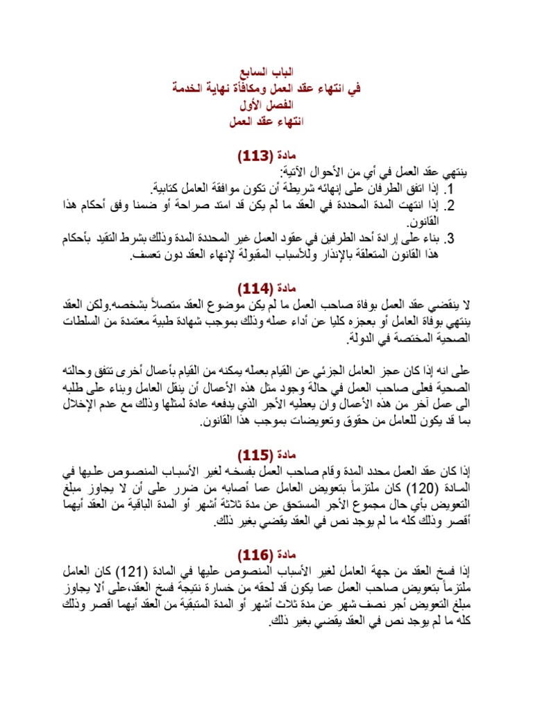 الباب السابع في انتهاء عقد العمل ومكافأة نهاية الخدمة 4