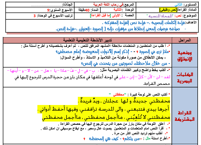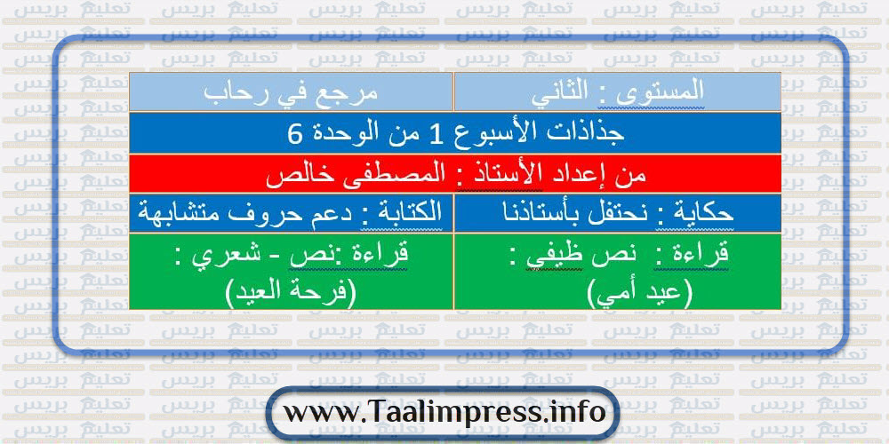 جذاذات في رحاب اللغة العربية المستوى الثاني ابتدائي موضوع متجدد موقع الأساتذة والتلاميذ للتعليم عن بعد